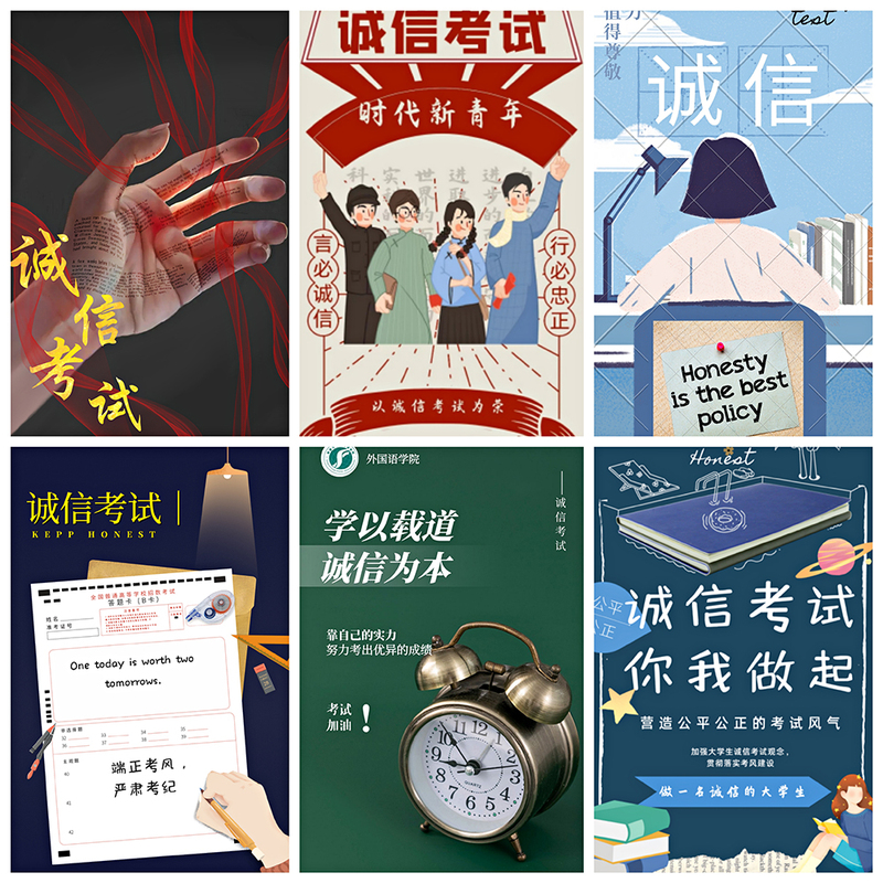 5月25日—6月2日,成人直播 举办“诚信考试”主题海报征集比赛活动。经过角逐,英语师范193班吴昭宇、翻译201班李梦雪的作品获一等奖。