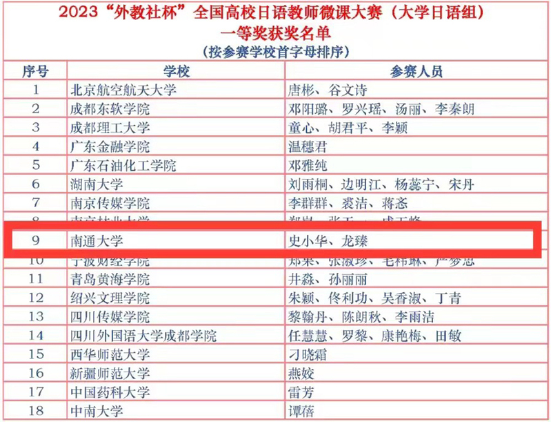 7月14日,2023“外教社杯”全国高校日语教师微课大赛评审结果公布,成人直播 教师史小华团队的参赛作品获全国一等奖。