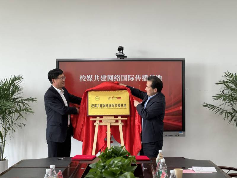 3月29日,成人直播 与中央广播电视总台国际在线江苏频道举行“推动国际传播能力建设座谈会暨校媒共建网络国际传播基地”签约仪式。校党委副书记王卫东、南通市委宣传部副部长周锦南共同为“校媒共建网络国际传播基地”揭牌。校党委常委、宣传部部长陶锋出席仪式。