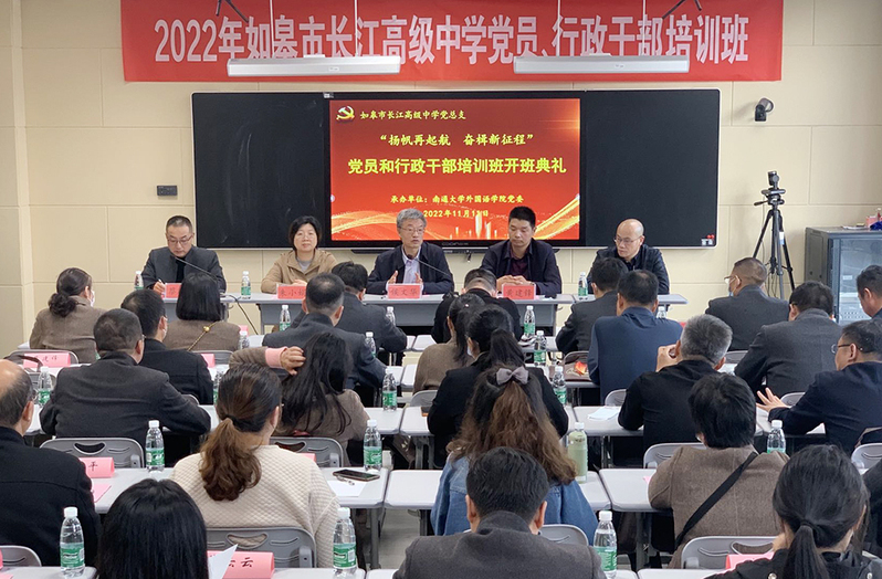 11月11日,如皋市长江高级中学党员、行政干部培训班在成人直播 开班。校党委常委、副校长侯文华出席开班仪式并讲话。