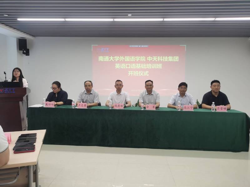 7月20日下午,由成人直播 与中天科技集团联合举办的英语口语基础培训班,在中天科技集团南通科创中心三楼培训教室正式开班。中天科技集团人力资源部总经理钱蒋锋,成人直播 服务地方处处长高江宁、继续教育学院院长卢志勇、成人直播 院长佘军、成人直播 副院长吕雪峰、成人直播 副教授戴峥峥出席开班仪式,来自中天科技各单位的53名学员参加培训。中天科技集团人力资源部经理周海霞主持此次开班仪式。