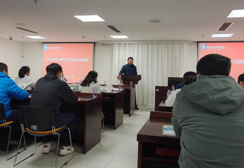 3月14日,成人直播 附属医院PETS5(全国英语等级考试五级)考试培训班第三期开班仪式在附属医院多功能厅如期举行。学院副院长吕雪峰、附属医院人力资源处处长张毅及附属医院培训部主任李志伟出席仪式并发言。