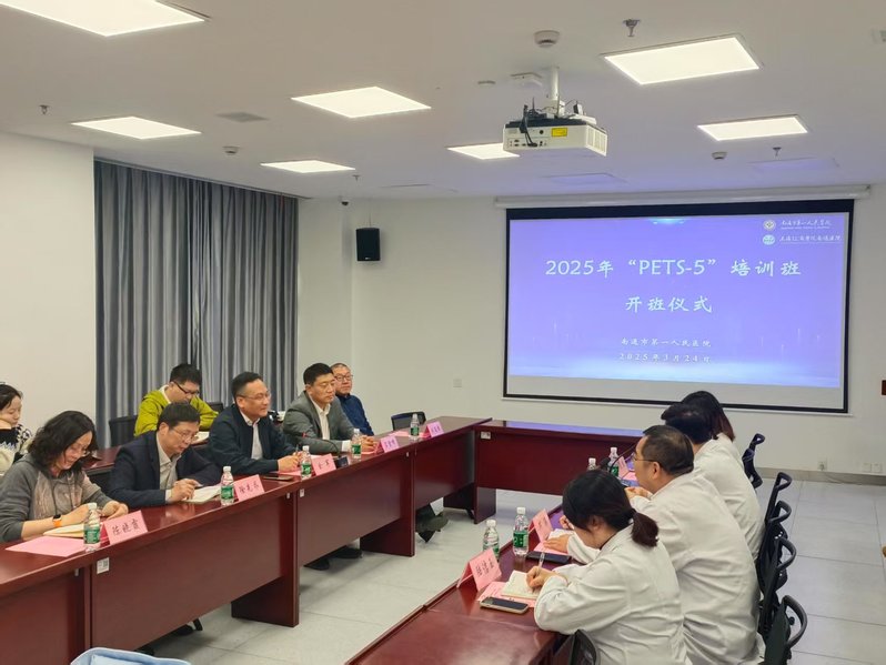 3月24日下午,南通市第一人民医院PETS5培训班开班仪式隆重举行。医院副院长兼总会计师缪旭、副院长何涛、学院院长佘军、副院长吕雪峰以及双方相关部门负责人、任课教师、参培学员齐聚一堂,共同开启培训之旅。