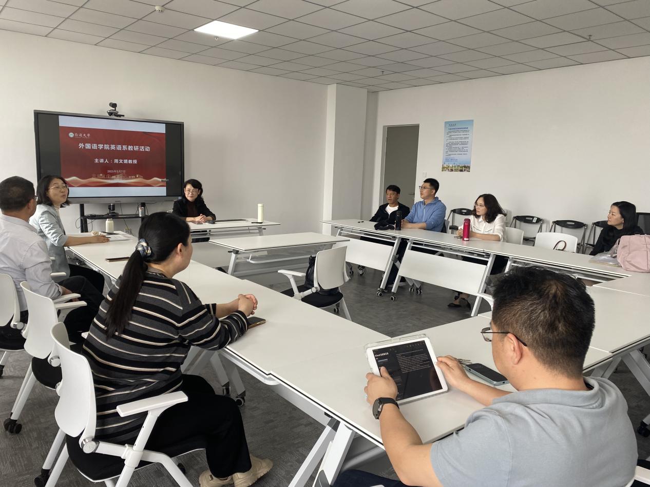 5月7日下午,成人直播 英语系于25号楼711研讨室举办“教科研经验分享与交流”主题教研活动,邀请资深教授周文娟老师与教师团队通过问答形式展开深度交流,旨在提升教师教学科研能力,促进团队协作发展。活动由英语系主任陈凤华主持,英语系全体教师参与。