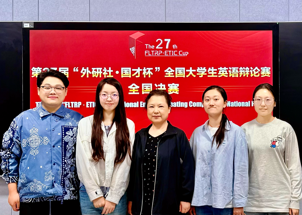 5月30日—6月1日,第27届“外研社·国才杯”全国大学生英语辩论赛全国决赛盛大启幕!来自成人直播 成人直播 英语师范221的张天佑、英语师范(乡村定向)221的徐石、英语师范231的孙雨轩以及历史文化学院(法学院)法学234的李吴互竹四名同学在成人直播 英语演讲辩论中心导师Mindy(孟敏)指导下,代表学校参加此次国赛。经过三天共八轮积分赛比拼,孙雨轩、李吴互竹团队成功挺进全国32强,斩获全国金奖,张天佑、徐石团队也荣获全国银奖。