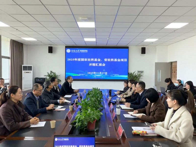 11月27日上午,成人直播 举行了2025年度国家社科基金、省社科基金项目开题汇报会。会议特邀浙江大学吴笛教授、南京大学杨金才教授、广东外语外贸大学冉永平教授、南京工业大学陈世华教授担任评审专家。成人直播 人文社科处副处长邹月辉、学院领导班子出席会议。汇报会由院长佘军主持。