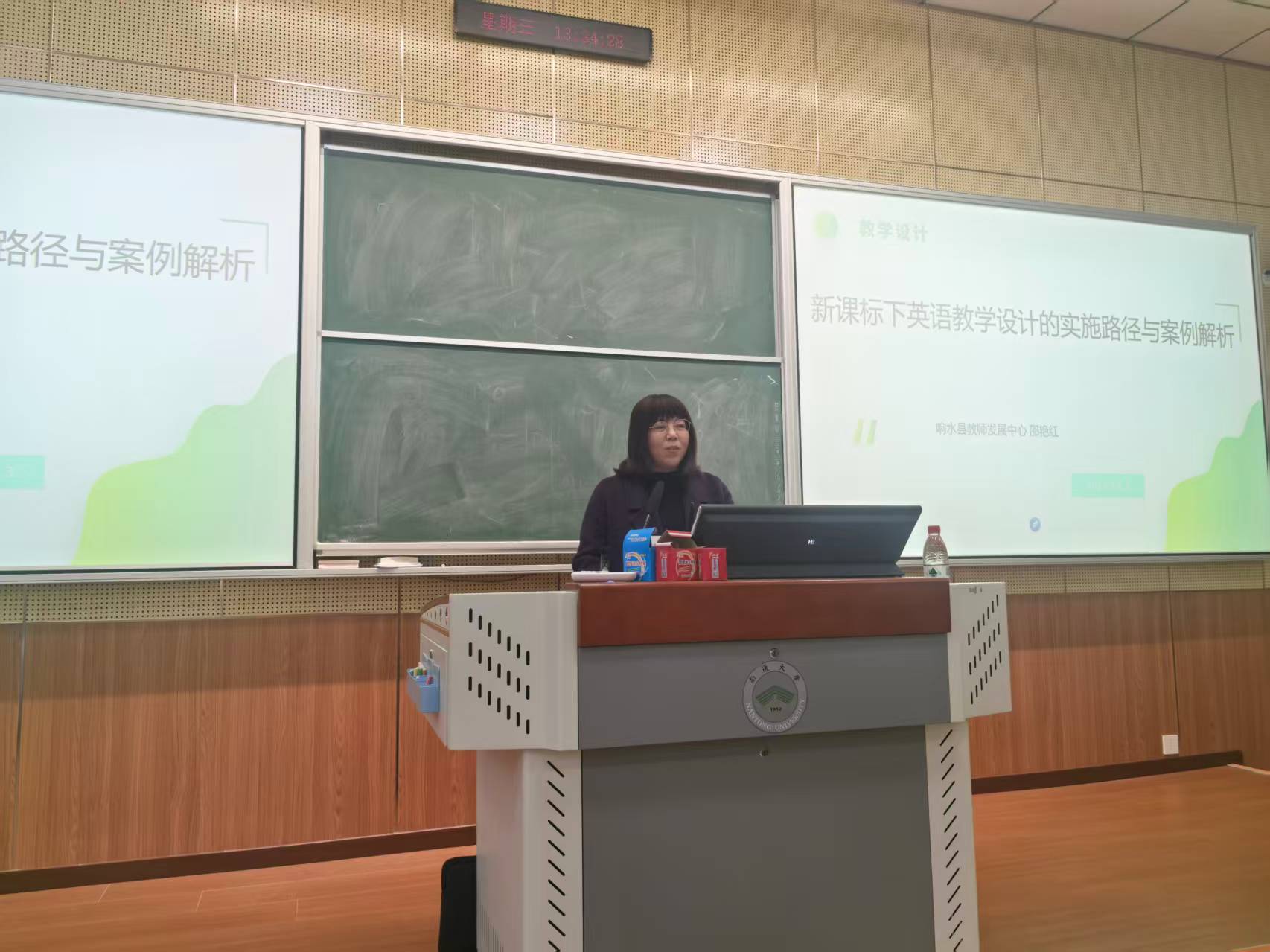 讲座聚焦两大核心主题 ——“义务教育英语课程标准(2025 年版)深度解读” 与 “新课标视域下英语教学设计的理论与实践”,为在场师生带来了一场兼具理论高度与实践指导价值的专业分享。邵艳红博士紧扣 “教学设计” 核心,系统梳理了新课标背景下英语教学的底层逻辑与实践框架,针对一线教学中普遍存在的痛点、难点问题,条分缕析地拆解了优质教学设计需涵盖的十个关键板块,从教学目标的科学设定、学情的精准研判,到教学活动的分层设计、评价方式的多元创新,层层递进、干货满满。在实操示范环节,邵艳红博士以经典阅读语篇为案例,完整呈现了从语篇深度研读、教学重难点提炼,到教学流程优化、教学资源整合的全流程设计思路,通过具体的教学片段展示与细节剖析,让抽象的新课标理念转化为可落地、可借鉴的教学实践方案。现场互动氛围热烈,师生们围绕教学设计中的实际困惑积极提问,邵艳红博士逐一耐心解答,结合自身丰富的教研经验给出针对性建议,进一步拓宽了师生的专业视野。