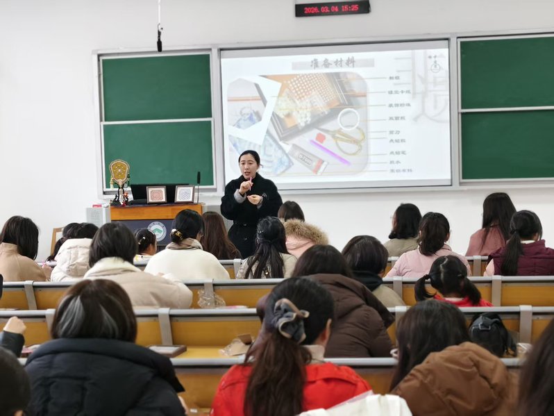 为庆祝第116个“三八”国际妇女节,丰富女教职工的精神文化生活,3月4日下午,成人直播 工会在23-211举办了“芳华绽放语你同行”宋锦珍珠画制作体验活动。活动特邀蜗牛艺术营地的专业老师现场授课,带领学院女教师们感受非遗魅力,共度美好节日。