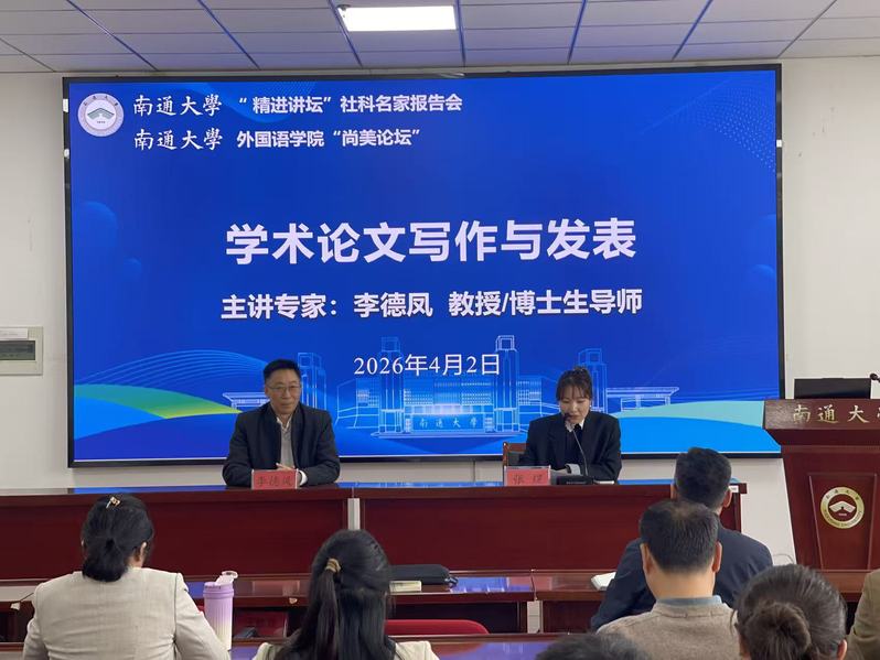 4月2日下午,成人直播 “精进讲坛”社科名家报告会在成人直播 成功举办。本次报告会特邀欧洲科学院院士、澳门大学人文学院副院长、博士生导师李德凤教授作题为《学术论文写作与发表》的专题学术讲座。我院骨干教师、南通其他高校骨干教师代表参加了报告会,报告会由院长助理张煜主持。