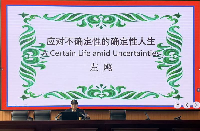 报告中,左飚教授立足时代变局,系统阐释 VUCA、BANI 两大时代特征,深入讲解应对不确定性的六项策略,并结合中外名家人生智慧,引导广大教师坚定理想信念、涵养正向价值观,以从容定力与责任担当应对挑战、潜心育人。整场报告立意高远、内涵丰富,既是对时代变局的深刻解读,也是对教师立身立业、修身修德的有力指引,兼具思想高度、人文温度与教育深度。